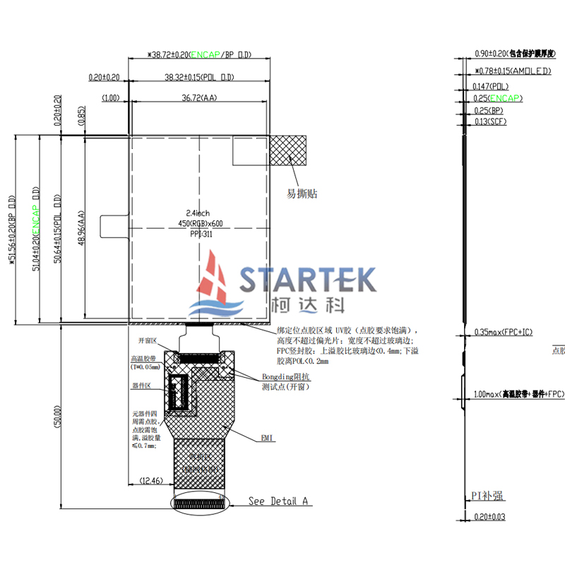 1. Product name: 2.4 inch OLED 450x600 resolution with MCU/MIPI interface LTPS AMOLED display