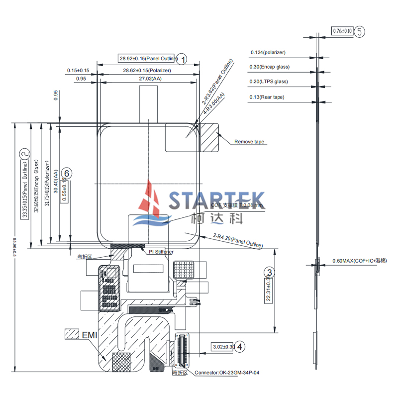 1. Product name: 320x360 Low Temperature Poly-silicon display 1.6 inch RM69092 IC Touch OLED