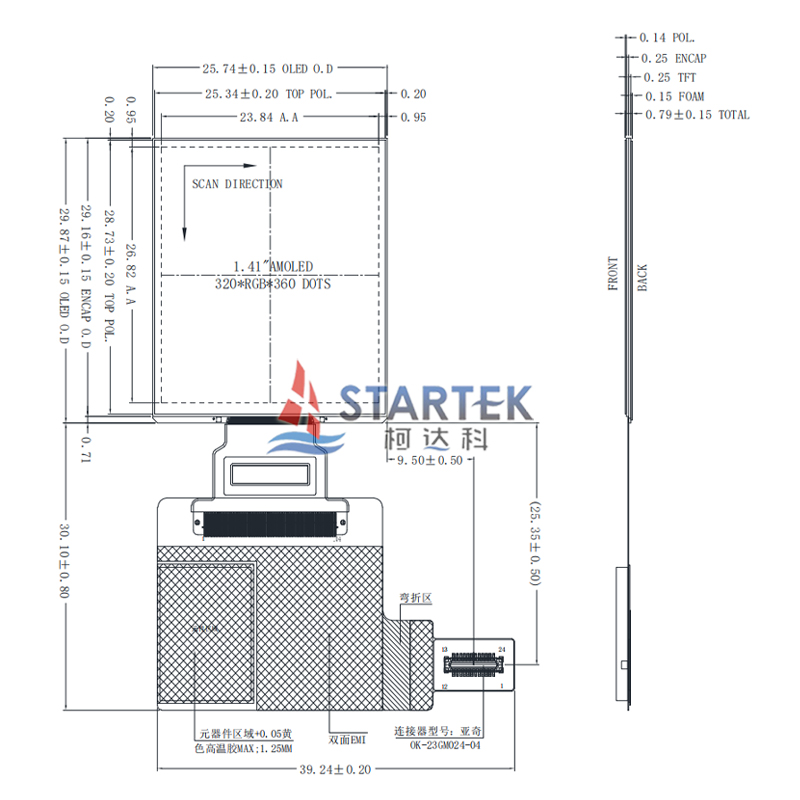 1.41 inch FT2390 Driver IC 320x360 incell Touch LTPS-AMOLED